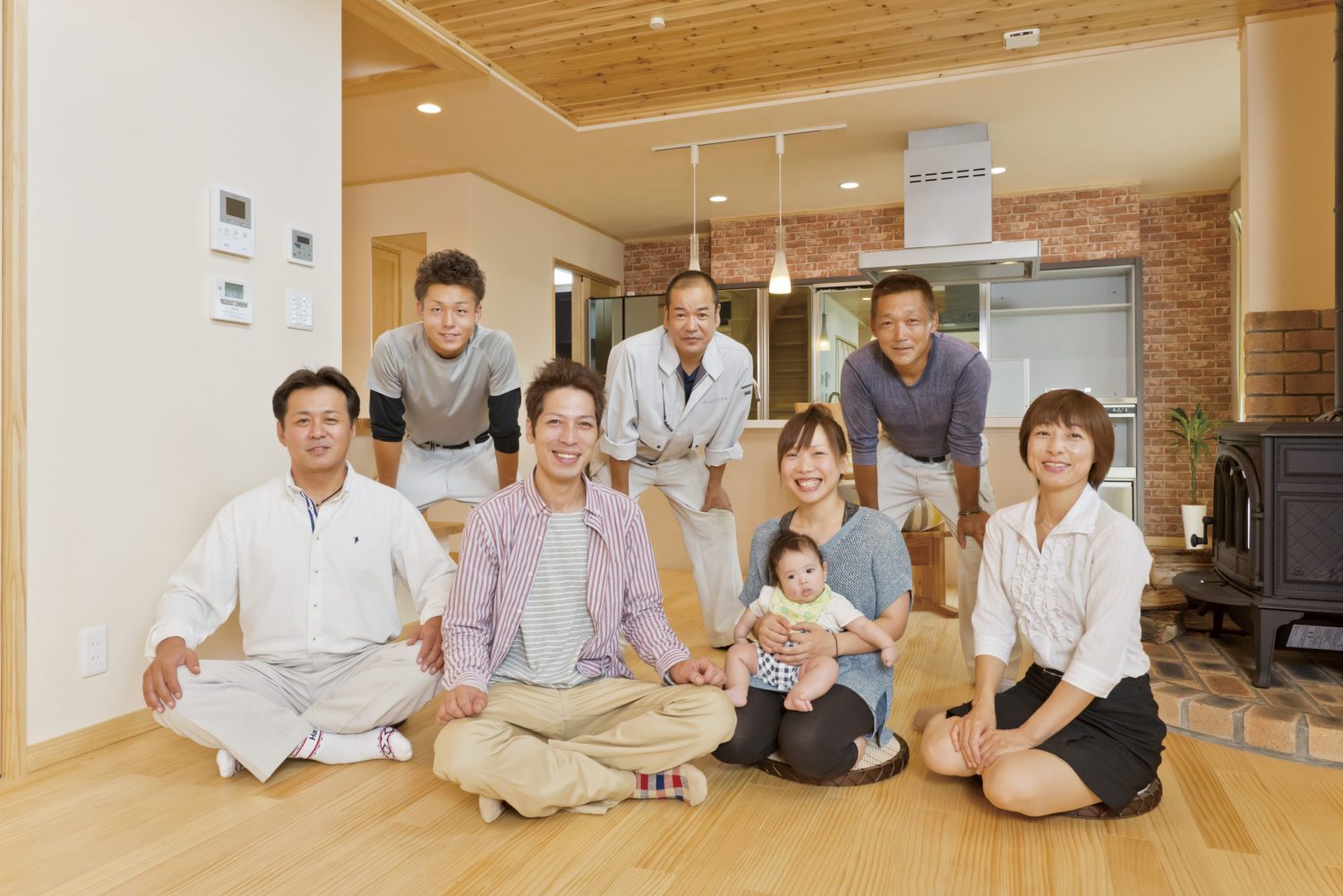 我が家の自慢は薪ストーブ。注文住宅を造るのなら必ずと思っていました。ご縁があって内山さんでお願いすることになりましたが、初めてお会いした時から完成まで、気がついたら一年以上経っていました。紆余曲折ありましたが、その間に話し合いを重ねた結果、床だけでなく天井など、家中に無垢材を沢山使った明るく温かい雰囲気のお家になりました。吹き抜けの渡り廊下からもリビングが見渡せ、家族での会話が楽しめそうです。薪ストーブの暖かさは癖になりますよ。